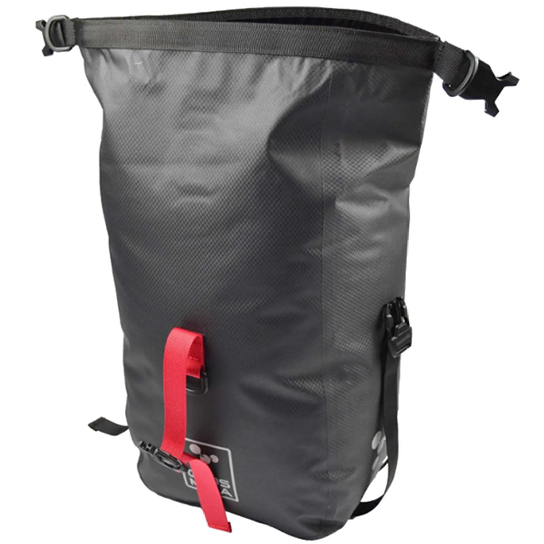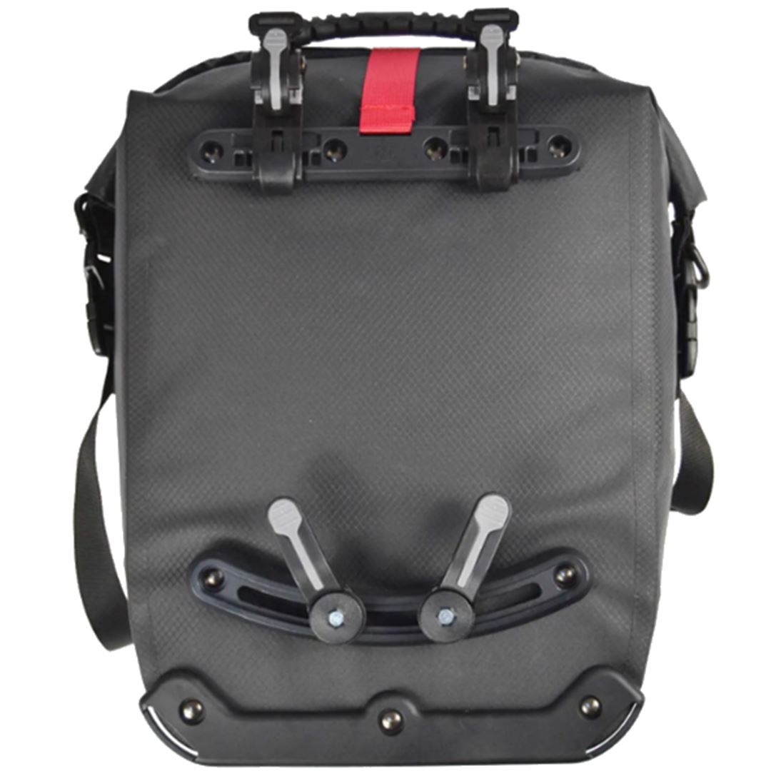 Fabricada en el resistente Nylon 420D TPU con costuras selladas mediante Alta Frecuencia, esta alforja 100% impermeable con cierre superior enrollable con correa de seguridad, compartimento interior acolchado forrado en Nylon 210D Ripstop, sistema de anclaje y desanclaje ra´pido QuickRelease con una mano y doble gancho inferior giratorio para mejorar la estabilidad.