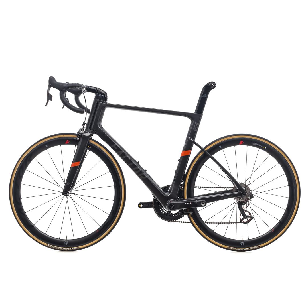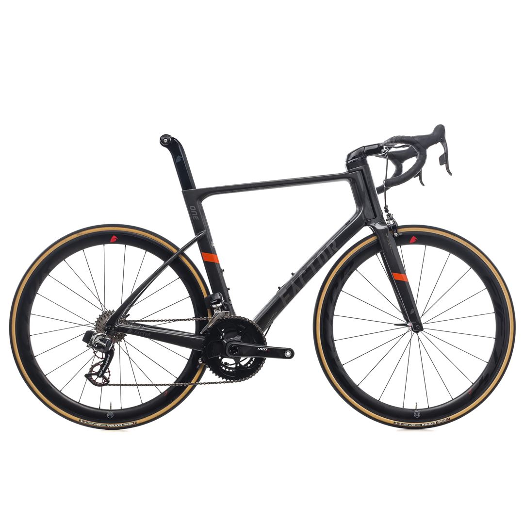 La bicicleta de carretera completa One David Millar Special Edition eTap Complete de Factor Bikes. El modelo insignia de One es Factor: una combinación de aerodinámica frontal, rigidez para escalar y correr, y el estilo de uno de los corredores más modernos del ciclismo.