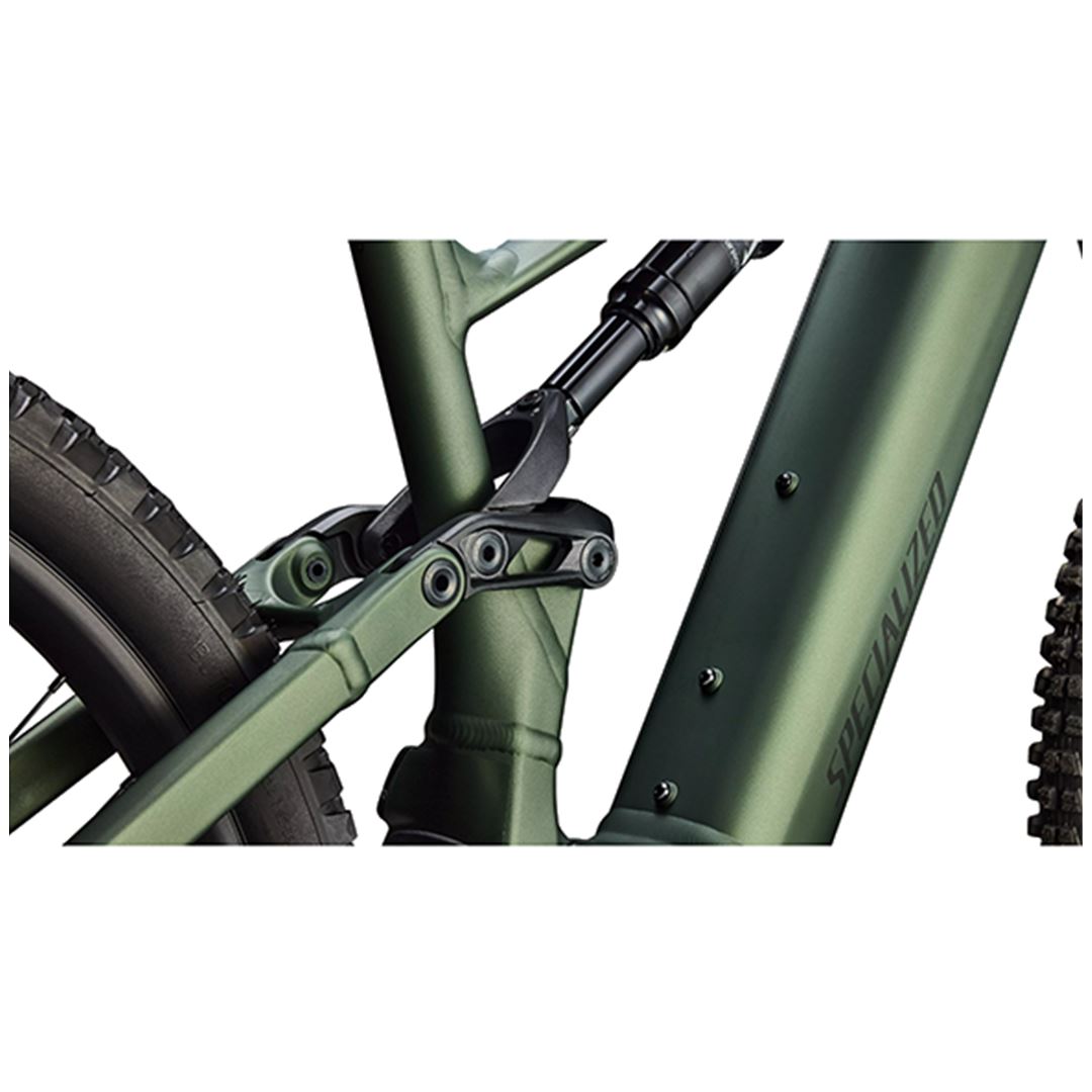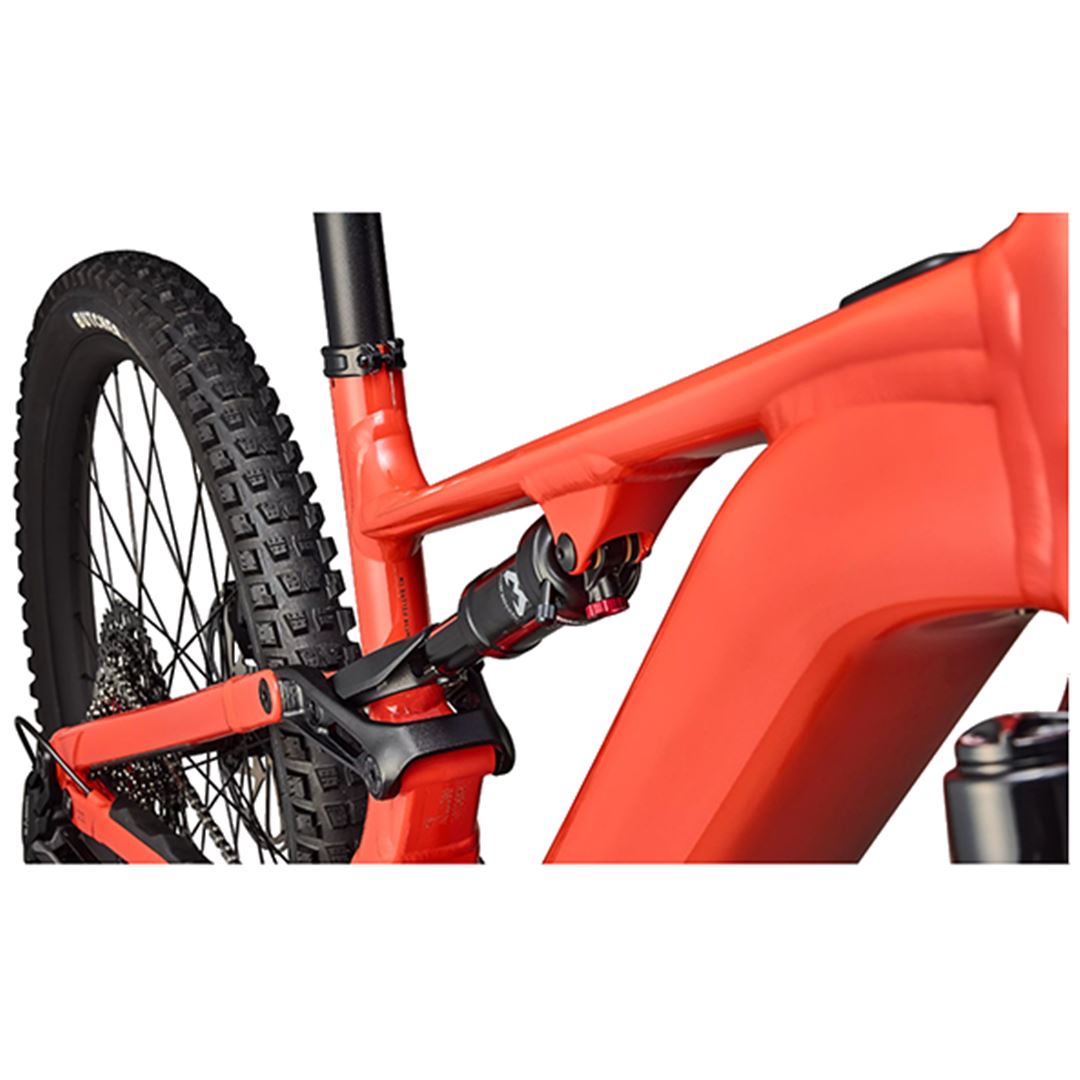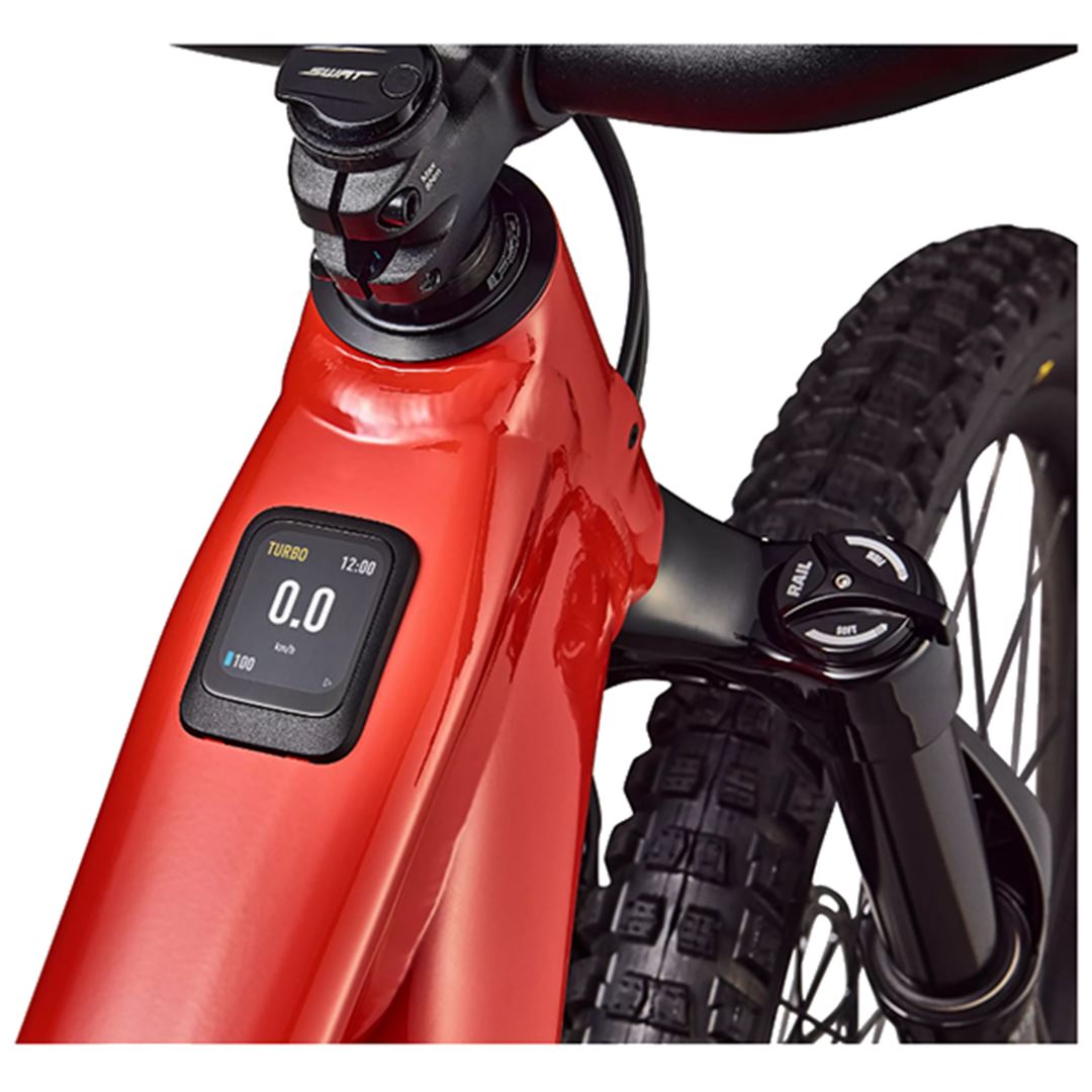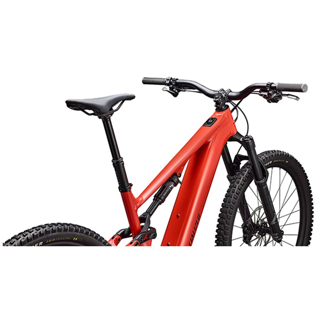 Su cuadro tiene 150 mm de recorrido trasero, una extensión de amortiguador de carbono, geometría ajustable y, por primera vez en una e-MTB, almacenamiento SWAT en el tubo diagonal. Además, tiene más tracción, control y comodidad gracias al ajuste de la horquilla y amortiguador con Specialized Ryde Dinamics, ruedas mixtas 29 delantera y 27,5 trasera para cualquier terreno y 4,75 horas de autonomía.