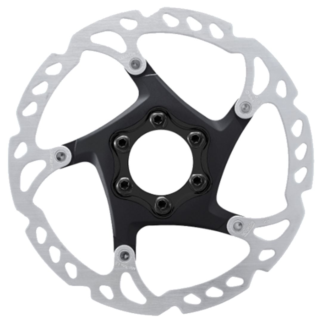Los discos de frenos de 6 tornillos SM-RT76 de SHIMANO proporcionan una potencia de frenado constante en todas las condiciones de conducción.