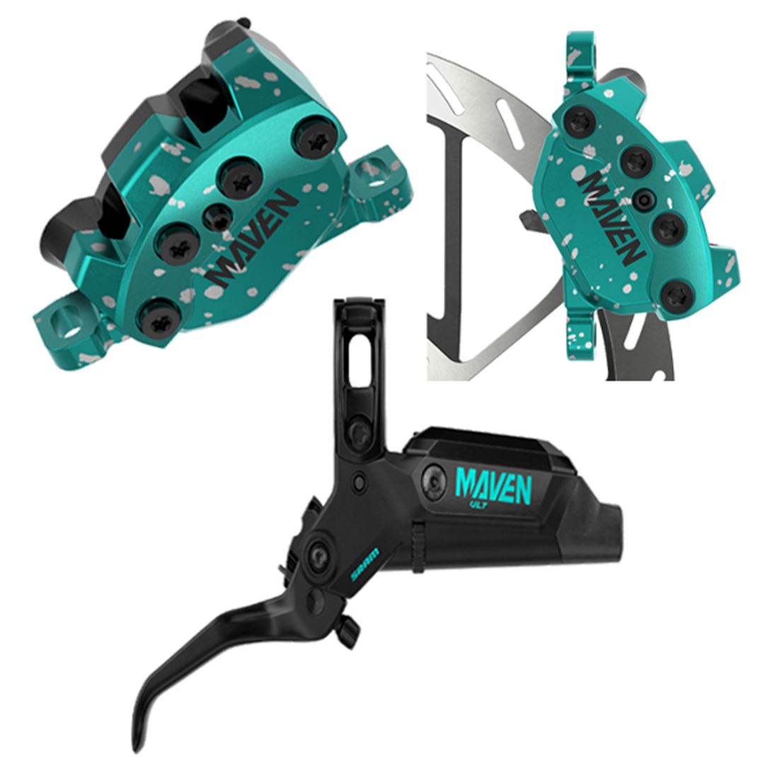 Para 2025, el kit presenta un acabado de pinza dividida, en verde azulado salpicado en una mitad y negro intenso en la otra. Con pistones gigantes de 18 y 19,5mm, tienes casi un 50 % más de potencia para ajustar la conducción exactamente como deseas. Con esto en mente, la Maven Expert Box incluye cuatro discos HS2 en tres tamaños diferentes (1 de 220 mm, 2 de 200 mm y 1 de 180 mm), así como pastillas de freno XL orgánicas y sinterizadas para hasta 14 combinaciones de ajuste diferentes.