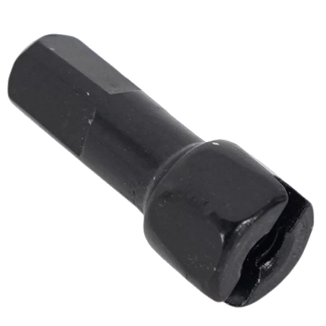 Niple de aleación liviana hexagonal DT Swiss negro de 2,0 mm con compuesto Prolock aplicado a las roscas del niple.