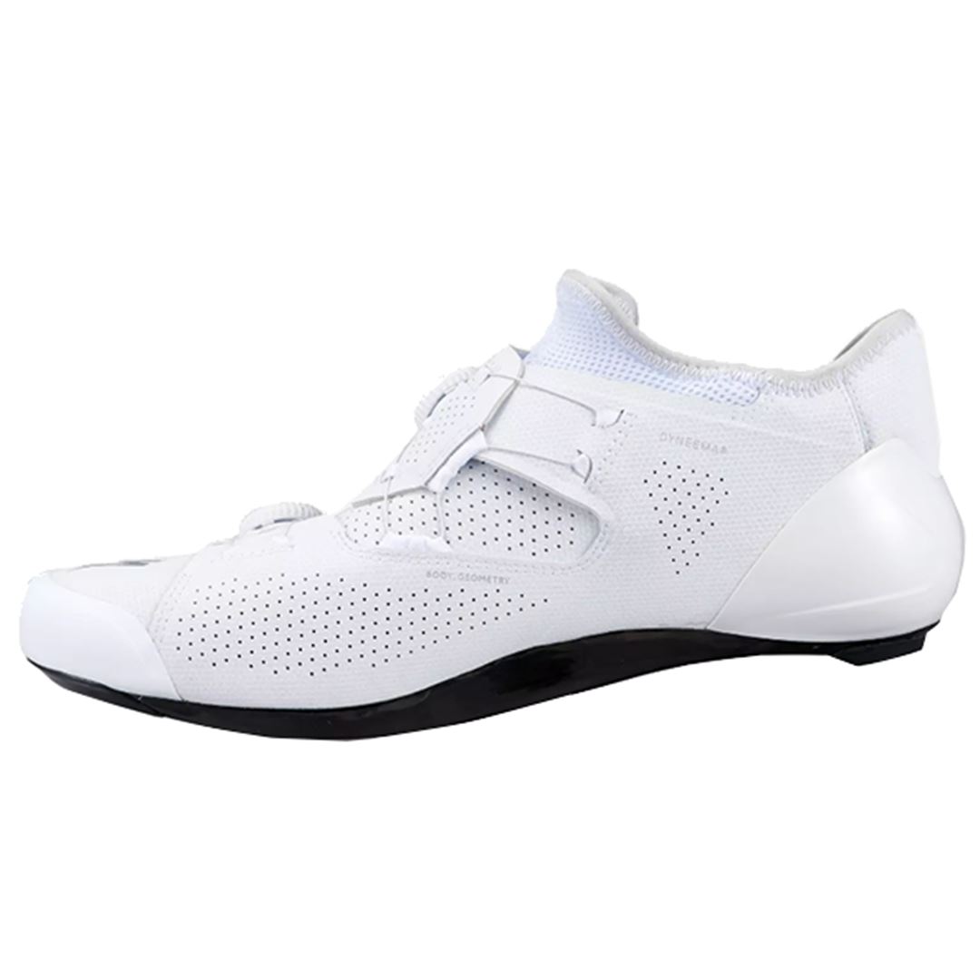 Un sistema de cierre completamente nuevo, pendiente de patente, un calcetín sin dedos reforzado con Dyneema® y una suela exterior de carbono ultra rígida FACT Powerline™ elimina el balanceo del pie, reduce la presión sobre los tendones y transfiere cada gramo de potencia a los pedales para un rendimiento y una comodidad sin precedentes.